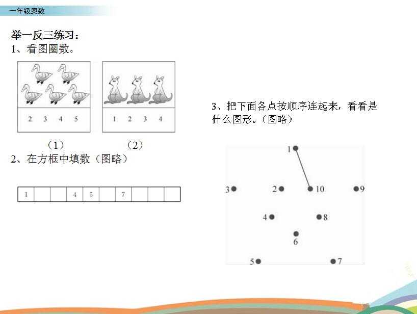 收藏 本一年级奥数举一反三学习资料全套内容目录如下: 1)举一反三一年级奥数PPT课件文档内容截图: 2)举一反三1年级奥数配套电脑版动画视频讲解截图: 一年级数学例题课件 本站所有内容均可免费下载 一、特别说明:注册会员后每天有3次免费下载各类模板、素材、课程次数,请慎用! 上一篇:小学语文2020年春季一年级下册会员导读视频教程及课件资料(共36集) 下一篇:华罗庚小学四年级奥数全套培训网课(12集)