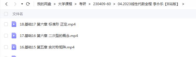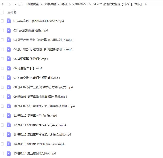李永乐 2023 考研数学《线性代数全程班》网课文件目录: 01.导学宣传:李永乐带你搞定线代.mp4