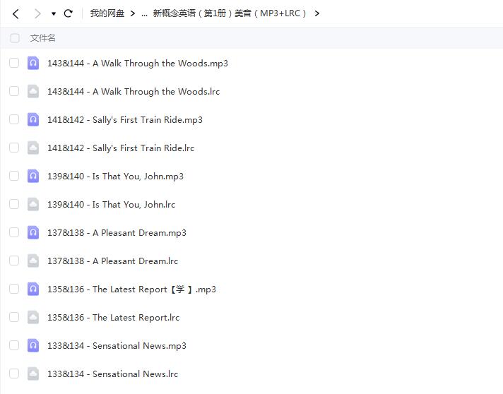 新概念英语四册配套音频 百度云网课资源文件目录:├─新概念英语(第1册)美音(MP3+LRC)