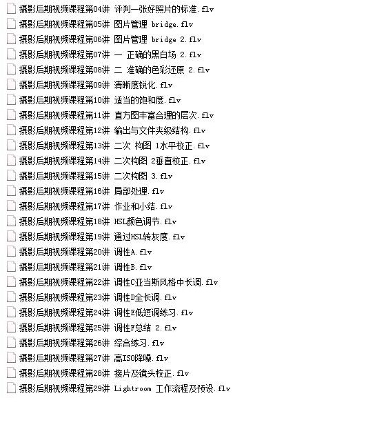 收藏 本摄影后期照片处理高清视频教程目录如下: 摄影摄像视频教程后期处理 本站所有内容均可免费下载 一、特别说明:注册会员后每天有3次免费下载各类模板、素材、课程次数,请慎用! 上一篇:训犬教程-名犬百科与训犬百法视频教程 下一篇:婚纱摄影入门到精通视频教程(从小白到优秀婚礼摄影师)