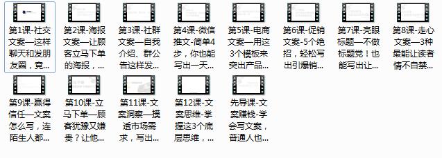 收藏 本《12课搞定赚钱文案课》全套视频教程内容目录如下: 自媒体运营文案视频教程 本站所有内容均可免费下载 一、特别说明:注册会员后每天有3次免费下载各类模板、素材、课程次数,请慎用! 上一篇:淘宝电商特训营基础班视频-淘宝电商基础视频 下一篇:《新媒体爆款文案怎么写》全套教学视频(29集)
