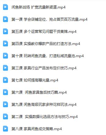 ├──千航《如何在闲鱼用免费流量卖家具》 |├──第八课家具闲鱼成交策略.mp4233.59M