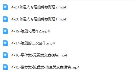 收藏 ├──埃德蒙第十九期《只说话就能火的短视频文案课》 |├──4-15-推荐类-流程类-热点类文案模块.mp4297.84M|├──4-16-事件类-元素类文案模块.mp4260.22M|├──4-17-编剧的二次创作.mp42.79G|├──4-19-编剧化写作2.mp42.04G|├──4-20普通人专属的种草账号1.mp4869.08M|└──4-21普通人专属的种草账号2.mp4939.16M 网络营销文案就能 本站所有内容均可免费下载 一、特别说明:注册会员后每天有3次免费下载各类模板、素材、课程次数,请慎用! 上一篇:98k学院的淘特无货源线上速成课程,从入门到精通,让您以最小投入获得最高回报! 下一篇:学习黄岛主的微头条副业,探索微头条平台带来的副业机会!