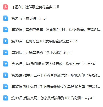 ├──揽客魔 直播疯狂掘金课(完结)? |├──【福利】社群吸金葵花宝典.pdf51.64M
