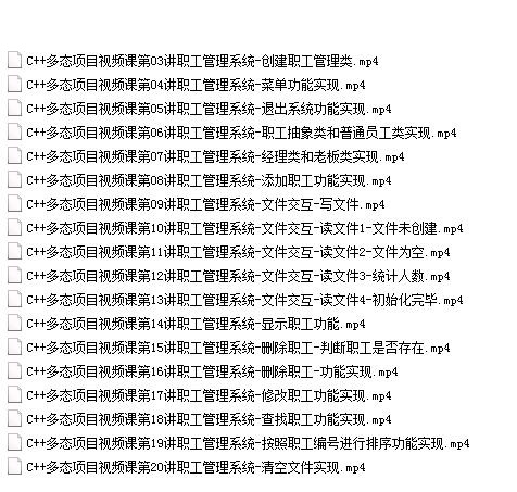 收藏 本VC++企业职工管理系统实战视频教程内容目录如下: 视频教程企业职工 本站所有内容均可免费下载 一、特别说明:注册会员后每天有3次免费下载各类模板、素材、课程次数,请慎用! 上一篇:C++深入学习视频教程(提高篇 97讲) 下一篇:C++通讯录管理系统开发视频教程(VS2017)