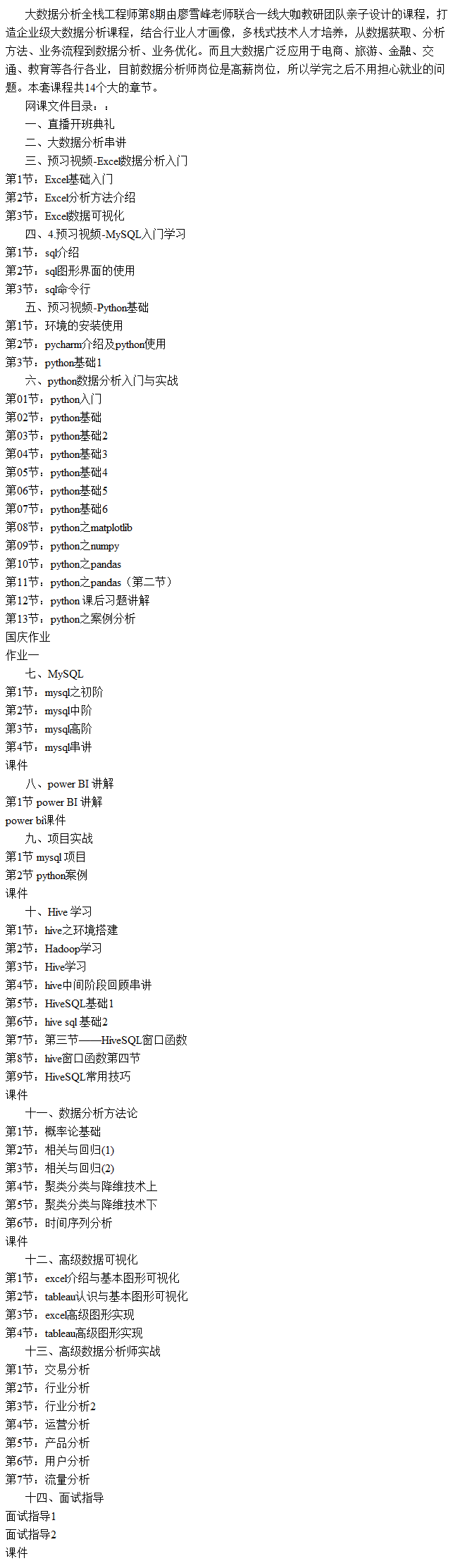> 廖雪峰数据分析全栈工程师视频