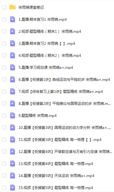 宋雨晴 2023高一物理 尖端寒假班 网课文件目录: