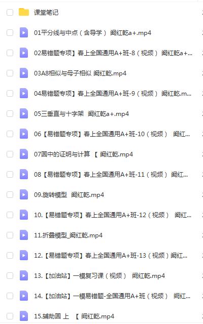 阚红乾 2023初三数学 A+春季班 网课文件目录:01平分线与中点(含导学) 阚红乾a+.mp402易错题专项】春上全国通用A+班-8(视频) 阚红乾a+.mp4