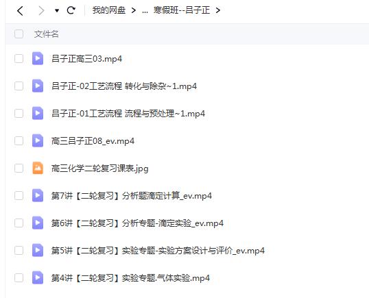 ?高中化学 吕子正2022届高考化学二轮复习寒春联报班 寒假班 春季班更新15讲? 5.09 网课文件目录:├─春季班│ ├─昌子正-O6原理专题电化学综合(上) ~1.mp4