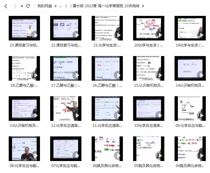 康永明 2022寒 高一化学寒假班 23讲完结 网课文件目录:├─01硫及其化合物基础知识(上).mp4