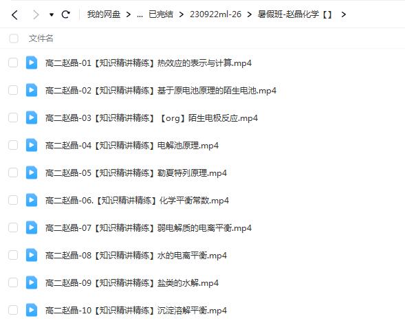 2024高二化学 赵晶 暑假班 网课文件目录:高二赵晶-01【知识精讲精练】热效应的表示与计算.mp4