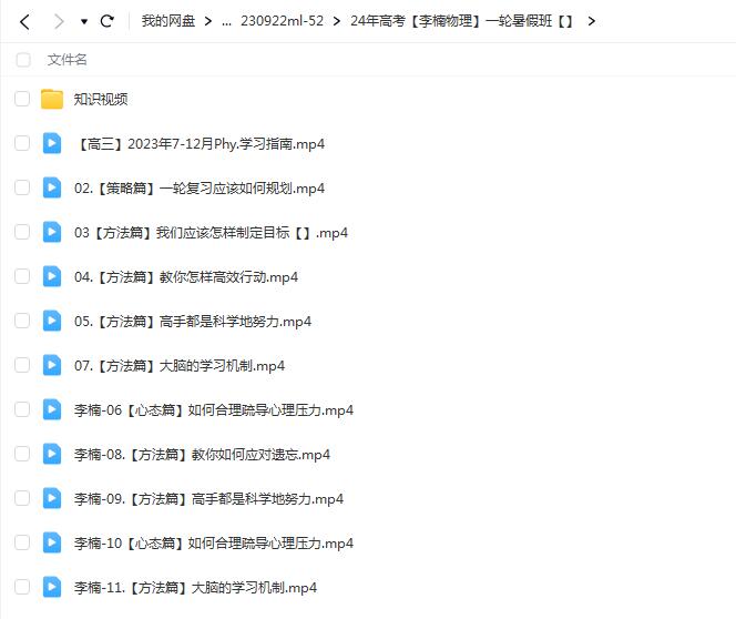 2024高三高考物理 李楠物理 一轮暑假班网课文件目录: