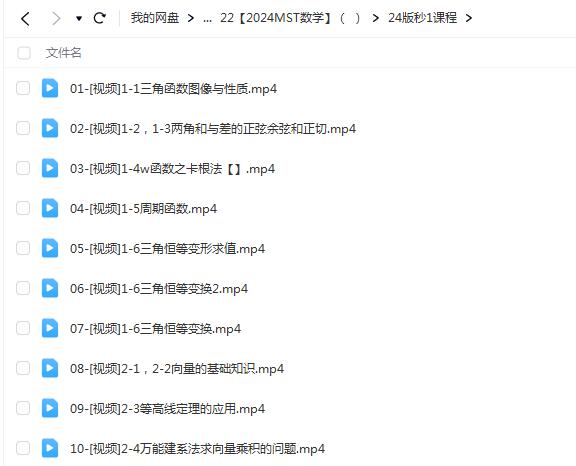 2024高三高考数学 MST数学网课文件目录:24一轮系统课: