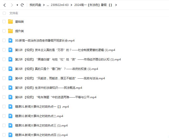 2024高一政治 朱法垚政治 暑假班?网课文件目录:00.新高一政治朱法垚老师暑假开班家长会.mp4