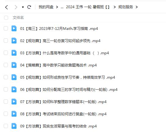 2024高三高考数学 王伟数学 一轮暑假班网课文件目录:规划服务: