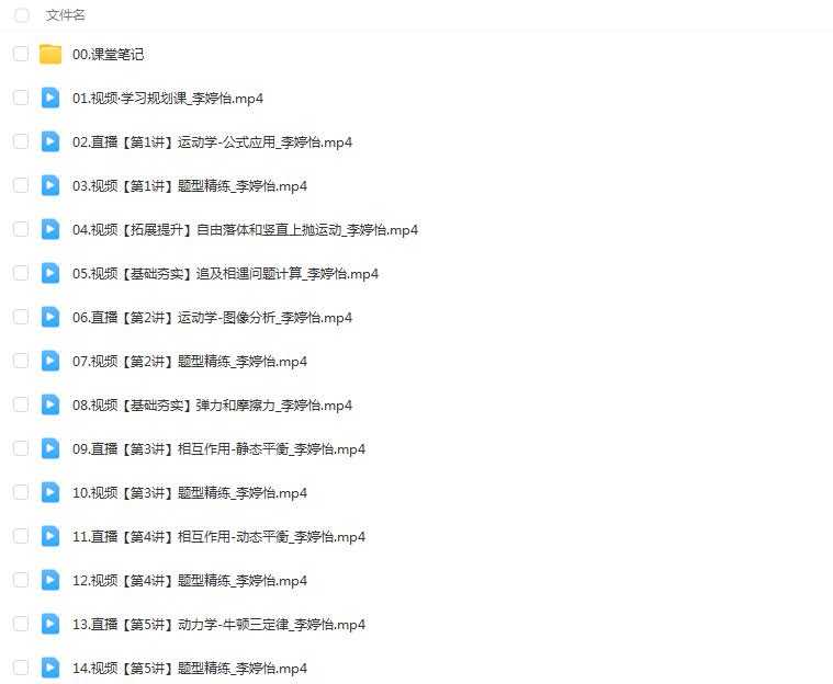 李婷怡 2024高三高考物理 A+暑假班 网课文件目录: