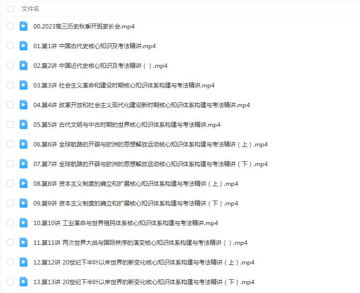 2024高三高考历史 褚润历史 秋季班网课文件目录: