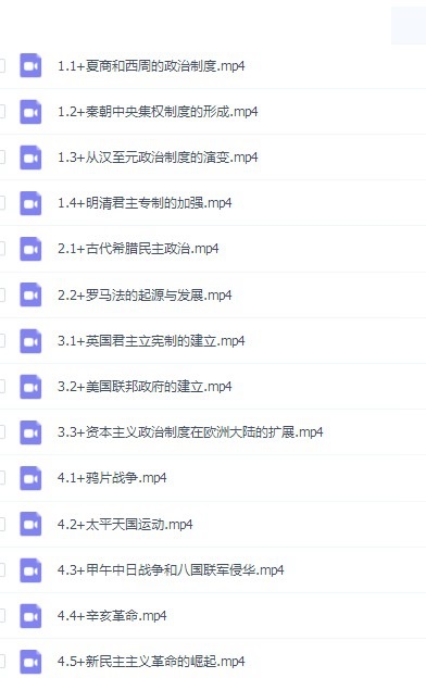 人教版高中历史必修一教学视频目录:(方老师 8章)